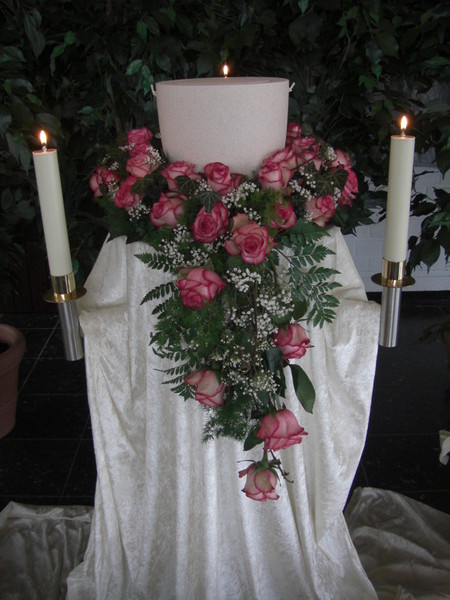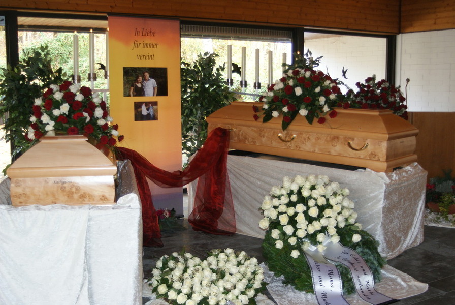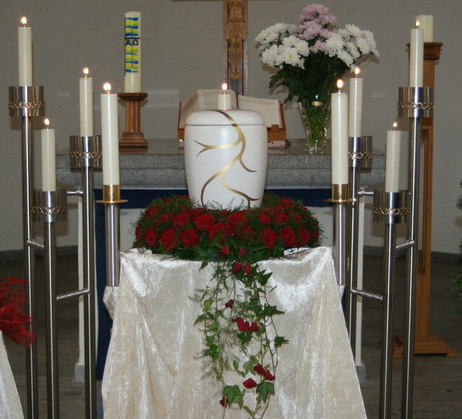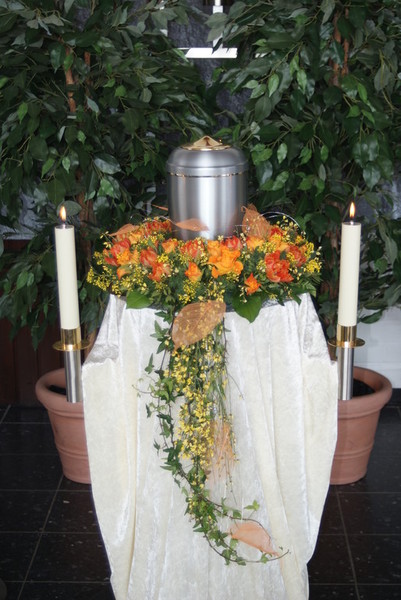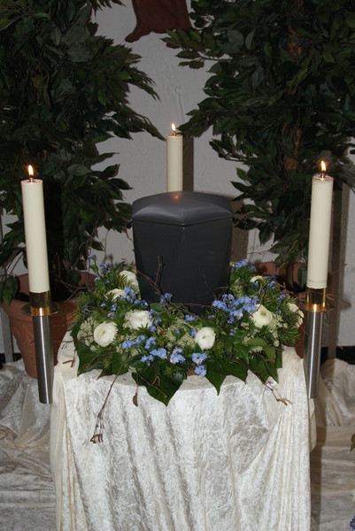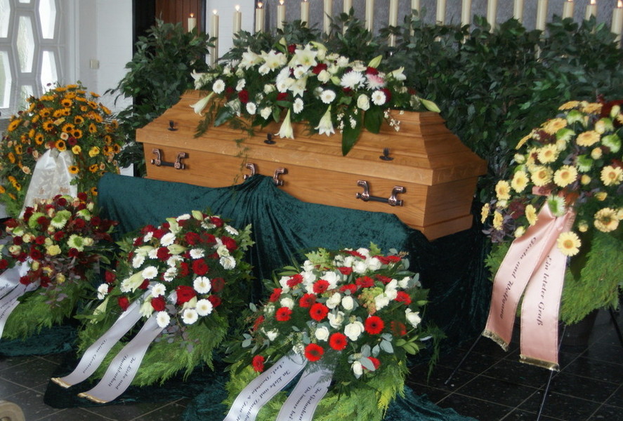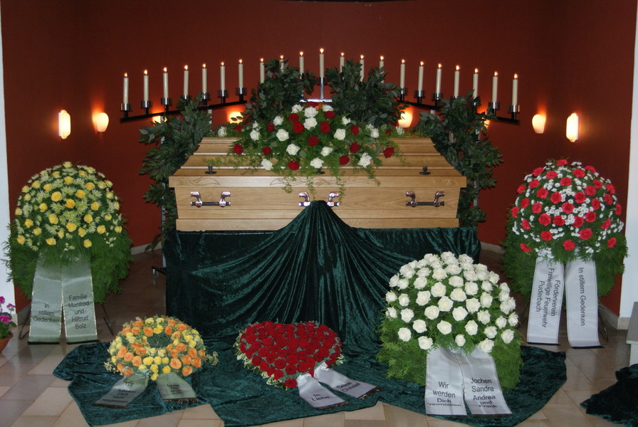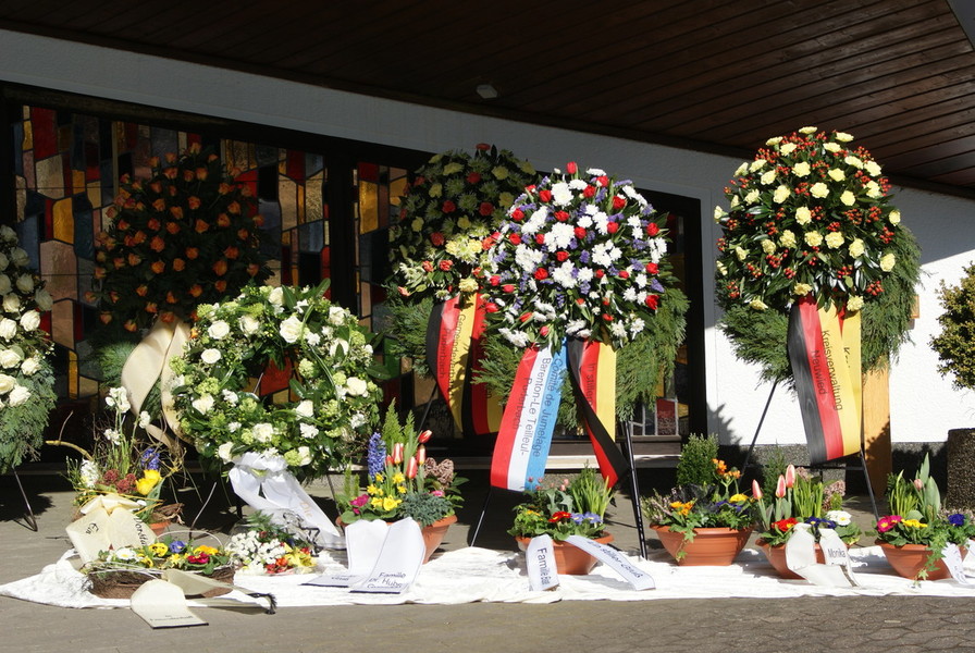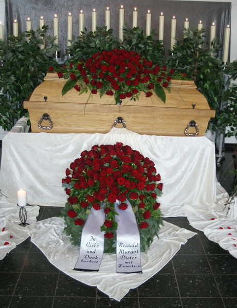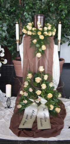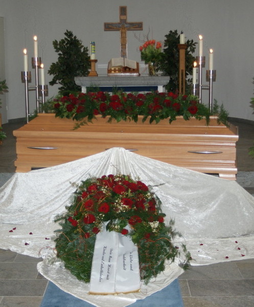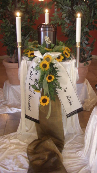 - Die Blumenarrangements in der Trauerhalle sowie am Grab