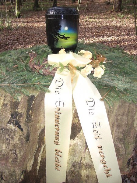 Nach der Einäscherung kann die biologisch abbaubare Urne z. B. im Ruhewald Steimel beigesetzt werden. Die Aufbahrung kann in Steimel wahlweise in der Trauerhalle des Friedhofes oder am